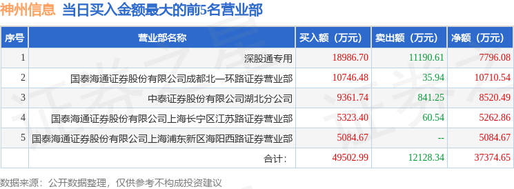 证券之星消息,沪深交易所2025年11月3日公布的交易公开信息显示,神州信息(000555)因日振幅值达到15%的前5只证券,日涨幅偏离值达到7%的前5只证券登上龙虎榜。此次是近5个交易日内第3次上榜。
