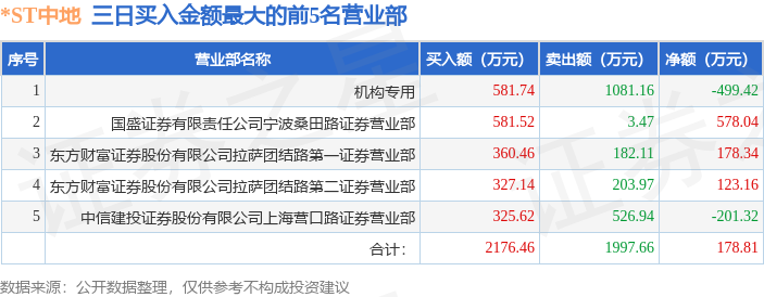 证券之星消息,沪深交易所2025年11月3日公布的交易公开信息显示,*ST中地(000736)因连续三个交易日内,涨幅偏离值累计达到12%的ST证券、*ST证券和未完成股改证券登上龙虎榜。此次是近5个交易日内第1次上榜。