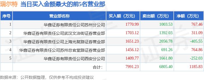 证券之星消息,沪深交易所2025年11月3日公布的交易公开信息显示,瑞尔特(002790)因日振幅值达到15%的前5只证券,日换手率达到20%的前5只证券登上龙虎榜。此次是近5个交易日内第2次上榜。
