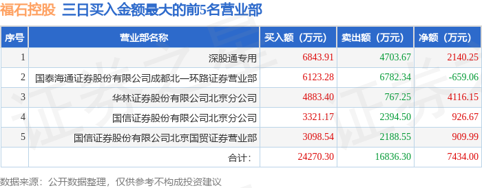 证券之星消息,沪深交易所2025年11月3日公布的交易公开信息显示,福石控股(300071)因连续三个交易日内,涨幅偏离值累计达到30%的证券登上龙虎榜。此次是近5个交易日内第2次上榜。
