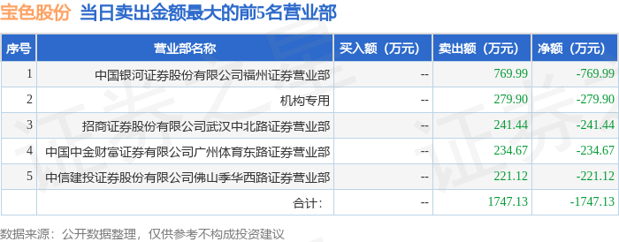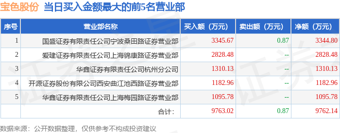 证券之星消息,沪深交易所2025年11月3日公布的交易公开信息显示,宝色股份(300402)因日涨幅达到15%的前5只证券登上龙虎榜。此次是近5个交易日内第1次上榜。