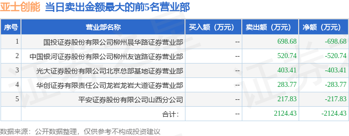 证券之星消息,沪深交易所2025年11月3日公布的交易公开信息显示,亚士创能(603378)因有价格涨跌幅限制的日收盘价格跌幅偏离值达到7%的前五只证券登上龙虎榜。此次是近5个交易日内第5次上榜。