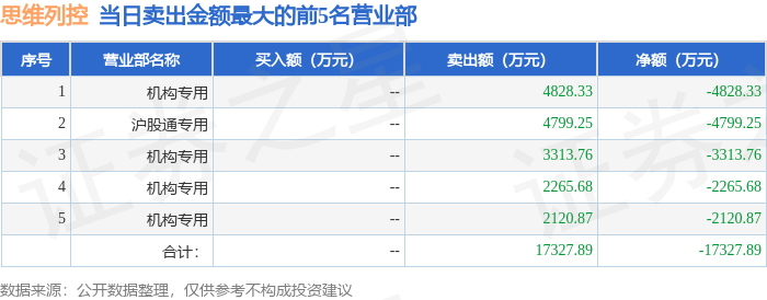 证券之星消息,沪深交易所2025年11月3日公布的交易公开信息显示,思维列控(603508)因有价格涨跌幅限制的日收盘价格跌幅偏离值达到7%的前五只证券登上龙虎榜。此次是近5个交易日内第2次上榜。