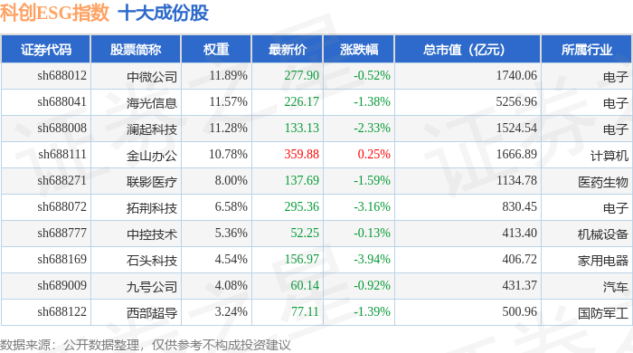 证券之星消息,11月3日,科创ESG(000691)指数报收于1478.78点,跌1.11%,成交473.93亿元,换手率1.39%。当日该指数成份股中,上涨的有20家,金盘科技以7.04%的涨幅领涨,下跌的有29家,三一重能以4.38%的跌幅领跌。