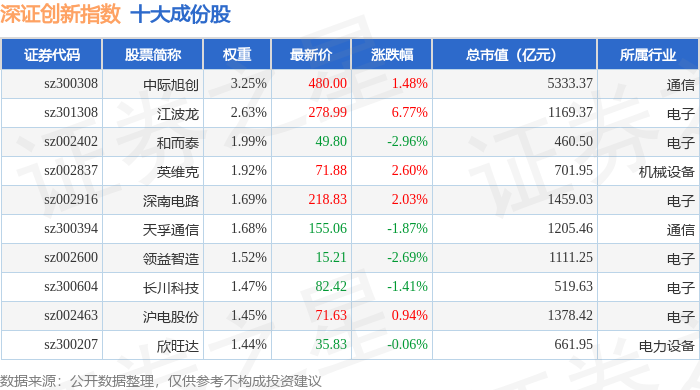 证券之星消息,11月3日,深证创新(399016)指数报收于5717.87点,涨0.4%,成交1780.56亿元,换手率2.77%。当日该指数成份股中,上涨的有56家,东方电子以7.73%的涨幅领涨,下跌的有43家,长盈精密以3.76%的跌幅领跌。