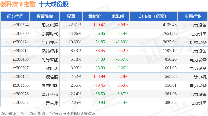 资金流向方面,碳科技30(399030)指数成份股当日主力资金净流出合计21.19亿元,游资资金净流入合计1.76亿元,散户资金净流入合计19.43亿元。成份股资金流向详情见下表: