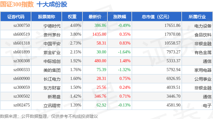 国证300(399312)指数十大成份股详情如下: