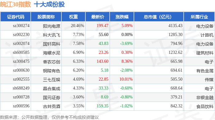 证券之星消息,11月3日,皖江30(399350)指数报收于3110.3点,涨1.55%,成交464.83亿元,换手率2.51%。当日该指数成份股中,上涨的有16家,三七互娱以10.01%的涨幅领涨,下跌的有13家,国轩高科以3.69%的跌幅领跌。