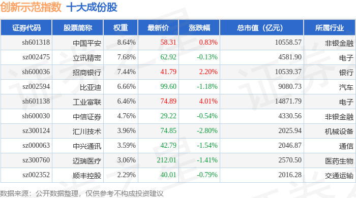创新示范(399351)指数十大成份股详情如下: