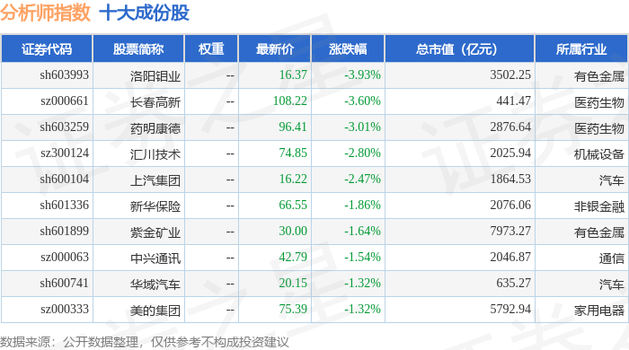 分析师指数(399354)十大成份股详情如下: