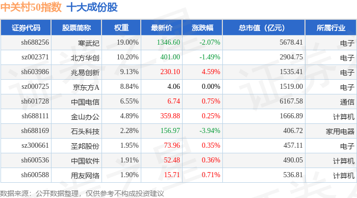 证券之星消息,11月3日,中关村50(399423)指数报收于3033.6点,跌0.02%,成交585.42亿元,换手率1.2%。当日该指数成份股中,上涨的有31家,掌阅科技以6.06%的涨幅领涨,下跌的有16家,三一重能以4.38%的跌幅领跌。