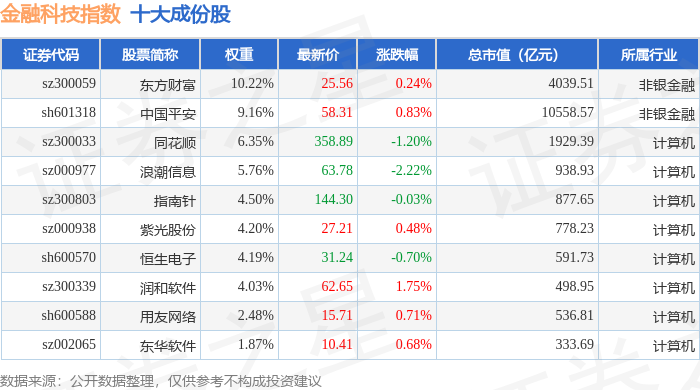 金融科技(399699)指数十大成份股详情如下: