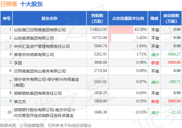 证券之星消息,11月3日日照港发布公告《日照港:日照港关于持股5%以上股东减持至5%以下的权益变动提示性公告》,其股东山东能源集团有限公司于2025年10月22日至2025年10月31日间合计减持1516.14万股,占公司目前总股本的0.4929%,变动期间该股股价下跌1.55%,截止10月31日收盘报3.18元。