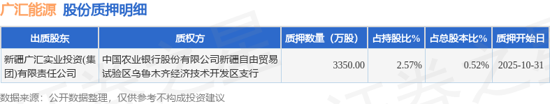 证券之星消息,广汇能源(600256)11月3日公开信息显示,股东新疆广汇实业投资(集团)有限责任公司向中国农业银行股份有限公司新疆自由贸易试验区乌鲁木齐经济技术开发区支行合计质押3350.0万股,占总股本0.52%。质押详情见下表: