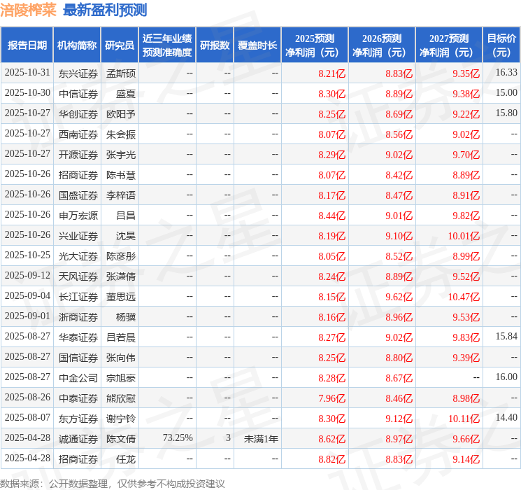 证券之星消息,2025年11月3日涪陵榨菜(002507)发布公告称公司于2025年10月31日接受机构调研,创金合信基金张小郭、国投瑞银张鸿、红土创新基金张洋、华安证券周韵、华创证券严文炀、华福证券童杰、华鑫证券张倩、华源证券周翔、金科投资张诚、金信基金黄飙、民生证券范锡蒙、东兴证券孟斯硕、前海开源基金张安华、青骊投资赵栋、瑞银集团宋婷、瑞银证券黄任悠、天风证券何宇航、天风自营丁灵效、西南证券舒尚立、羊角基金解睿、长安基金江博文、长江证券陈硕旸、方正证券王泽华 黄馨平、招商证券任龙 杜雯钰、浙商证券隋牧含、浙商自营叶小米、中信建投证券夏克扎提、中信证券江皓云、中邮基金郑玲、刘歉、光大证券汪航宇、光大证券资管严可人、广发证券廖承帅、国海证券齐晓石 刘洁铭、国盛证券李梓语 黄越 吴林轩参与。