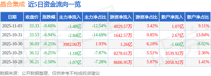证券之星消息,截至2025年11月3日收盘,晶合集成(688249)报收于33.33元,下跌0.6%,换手率3.0%,成交量35.57万手,成交额11.77亿元。