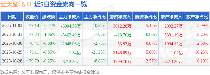 证券之星消息,截至2025年11月3日收盘,云天励飞(688343)报收于77.18元,下跌0.21%,换手率2.9%,成交量7.65万手,成交额5.88亿元。