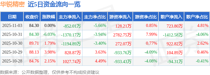 证券之星消息,截至2025年11月3日收盘,华锐精密(688059)报收于84.3元,上涨0.0%,换手率2.06%,成交量1.8万手,成交额1.5亿元。