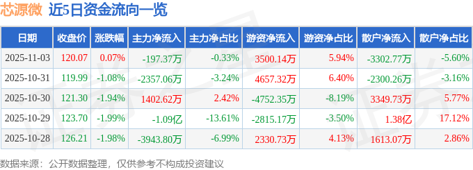 证券之星消息,截至2025年11月3日收盘,芯源微(688037)报收于120.07元,上涨0.07%,换手率2.49%,成交量5.02万手,成交额5.9亿元。