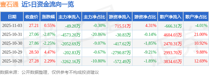 证券之星消息,截至2025年11月3日收盘,壹石通(688733)报收于27.21元,上涨0.55%,换手率3.11%,成交量6.21万手,成交额1.66亿元。