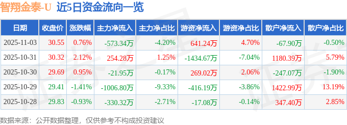 证券之星消息,截至2025年11月3日收盘,智翔金泰(688443)报收于30.55元,上涨0.76%,换手率3.86%,成交量4.51万手,成交额1.37亿元。