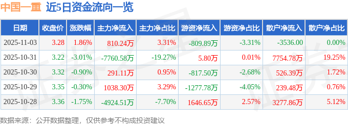 11月3日的资金流向数据方面,主力资金净流入810.24万元,占总成交额3.31%,游资资金净流出809.89万元,占总成交额3.31%,散户资金净流出0.35万元。