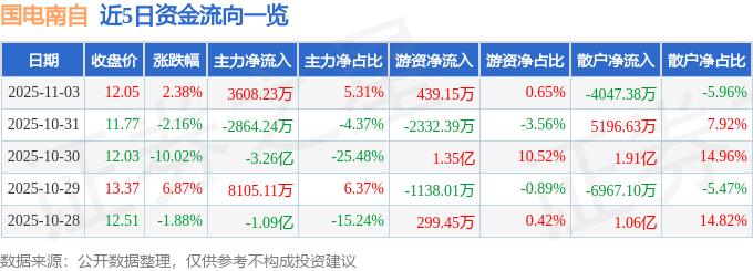 11月3日的资金流向数据方面,主力资金净流入3608.23万元,占总成交额5.31%,游资资金净流入439.15万元,占总成交额0.65%,散户资金净流出4047.38万元,占总成交额5.96%。