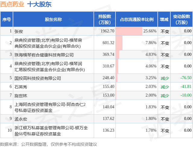 根据西点药业2025年三季报公布的十大股东详情如下: