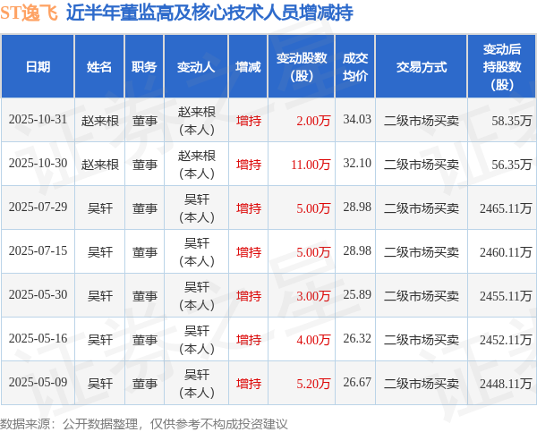 ST逸飞近半年内的董监高及核心技术人员增减持详情如下: