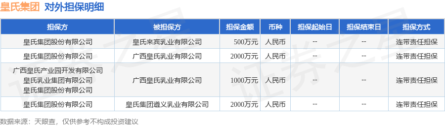 皇氏集团10月31日披露4笔对外担保,被担保公司3家。对外担保明细如下表: