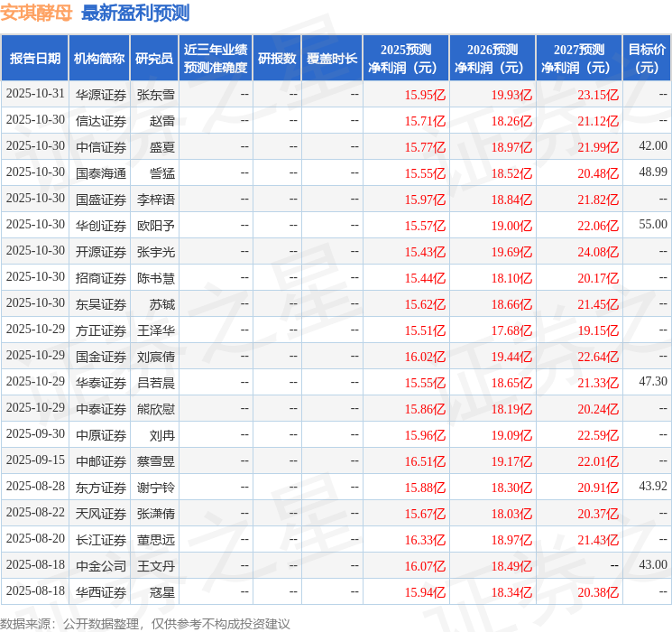 安琪酵母(600298)主营业务:面包酵母、中华面食酵母、酵母抽提物、酿酒酵母、生物饲料添加剂、营养保健产品、食品原料等产品的生产和销售。