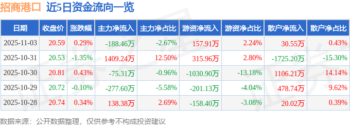 证券之星消息,截至2025年11月3日收盘,招商港口(001872)报收于20.59元,上涨0.29%,换手率0.2%,成交量3.43万手,成交额7054.92万元。