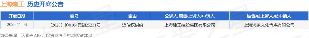 证券之星消息,根据天眼查APP显示,近日公布了一则上海建工控股集团有限公司作为原告/上诉人的开庭公告,详细内容如下: