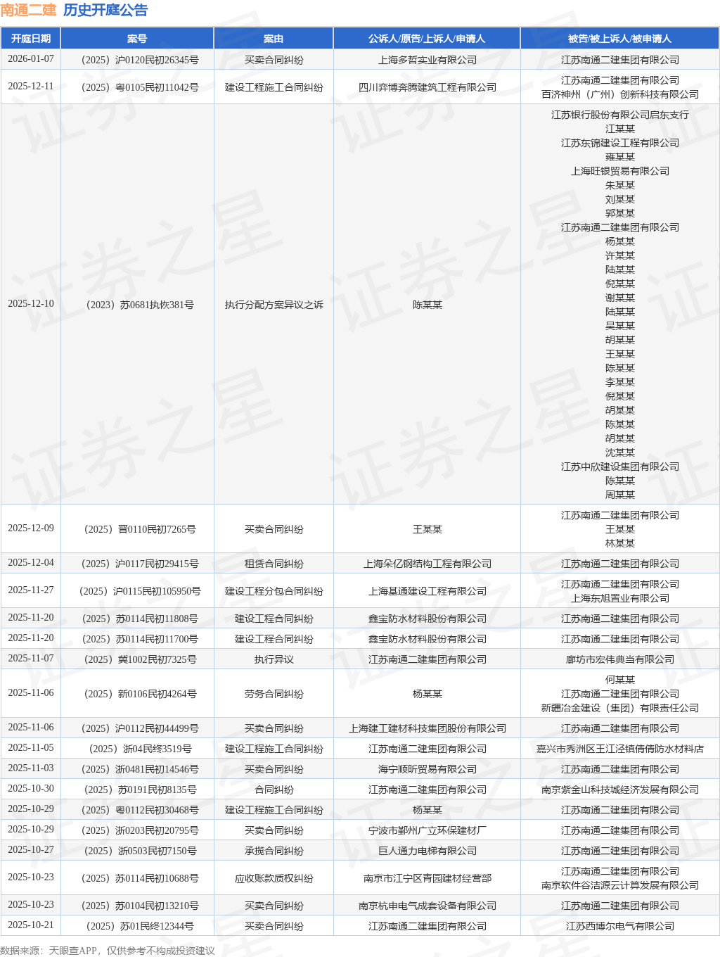 证券之星消息,根据天眼查APP显示,近日公布了一则江苏南通二建集团有限公司作为被告/被上诉人的开庭公告,详细内容如下: