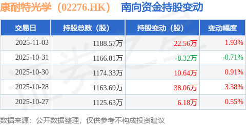 证券之星消息,11月3日南向资金增持22.56万股康耐特光学(02276.HK)。近5个交易日中,获南向资金增持的有4天,累计净增持69.12万股。近20个交易日中,获南向资金增持的有13天,累计净增持256.56万股。截至目前,南向资金持有康耐特光学(02276.HK)1188.57万股,占公司已发行普通股的2.46%。