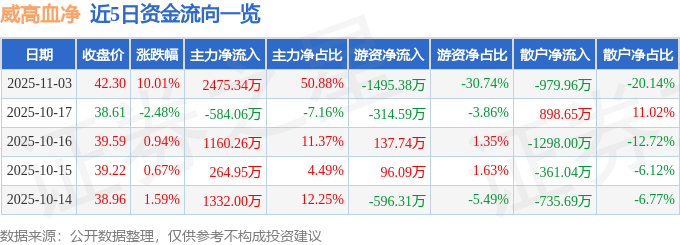 11月3日的资金流向数据方面,主力资金净流入2475.34万元,占总成交额50.88%,游资资金净流出1495.38万元,占总成交额30.74%,散户资金净流出979.96万元,占总成交额20.14%。