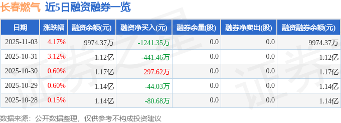 长春燃气融资融券信息显示,融资方面,当日融资买入2256.76万元,融资偿还3498.11万元,融资净偿还1241.35万元。融券方面,融券卖出0.0股,融券偿还0.0股,融券余量0.0股,融券余额0.0万元。融资融券余额9974.37万元。