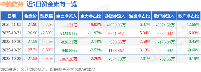 11月3日的资金流向数据方面,主力资金净流入1.21亿元,占总成交额19.03%,游资资金净流出4059.96万元,占总成交额6.37%,散户资金净流出8074.52万元,占总成交额12.66%。