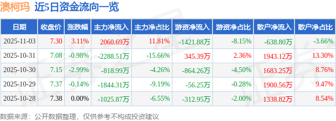 11月3日的资金流向数据方面,主力资金净流入2060.69万元,占总成交额11.81%,游资资金净流出1421.88万元,占总成交额8.15%,散户资金净流出638.8万元,占总成交额3.66%。