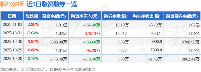 证券之星消息,截至2025年11月3日收盘,鄂尔多斯(600295)报收于11.39元,上涨2.98%,换手率1.4%,成交量27.68万手,成交额3.13亿元。