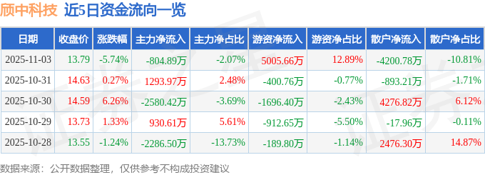 11月3日的资金流向数据方面,主力资金净流出804.89万元,占总成交额2.07%,游资资金净流入5005.66万元,占总成交额12.89%,散户资金净流出4200.78万元,占总成交额10.81%。