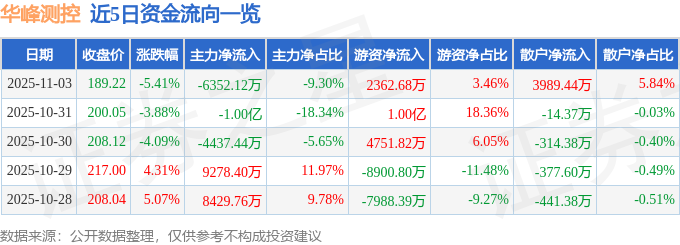 证券之星消息,截至2025年11月3日收盘,华峰测控(688200)报收于189.22元,下跌5.41%,换手率2.7%,成交量3.66万手,成交额6.83亿元。