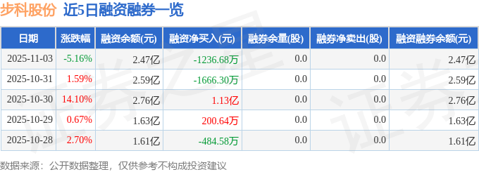 步科股份融资融券信息显示,融资方面,当日融资买入3424.67万元,融资偿还4661.36万元,融资净偿还1236.68万元。融券方面,融券卖出0.0股,融券偿还0.0股,融券余量0.0股,融券余额0.0万元。融资融券余额2.47亿元。