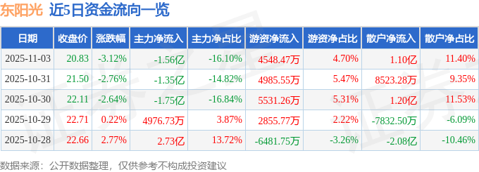 11月3日的资金流向数据方面,主力资金净流出1.56亿元,占总成交额16.1%,游资资金净流入4548.47万元,占总成交额4.7%,散户资金净流入1.1亿元,占总成交额11.4%。