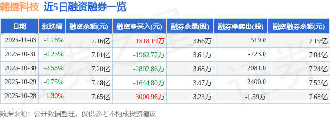 翱捷科技融资融券信息显示,融资方面,当日融资买入5935.86万元,融资偿还4417.67万元,融资净买入1518.19万元。融券方面,融券卖出919.0股,融券偿还400.0股,融券余量3.66万股,融券余额335.61万元。融资融券余额7.19亿元。