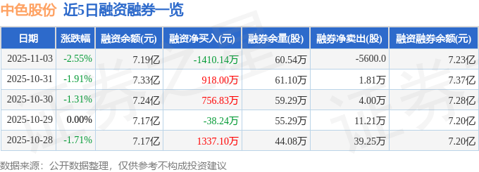 中色股份融资融券信息显示,融资方面,当日融资买入5031.23万元,融资偿还6441.37万元,融资净偿还1410.14万元。融券方面,融券卖出5900.0股,融券偿还1.15万股,融券余量60.54万股,融券余额393.51万元。融资融券余额7.23亿元。