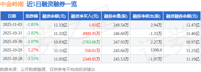 中金岭南融资融券信息显示,融资方面,当日融资买入1.88亿元,融资偿还8657.37万元,融资净买入1.01亿元。融券方面,融券卖出3.16万股,融券偿还2200.0股,融券余量249.54万股,融券余额1350.01万元。融资融券余额12.47亿元。