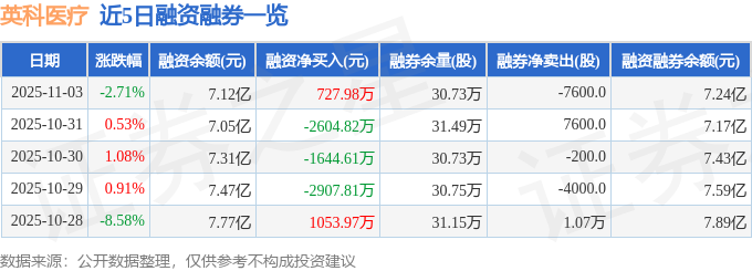 英科医疗融资融券信息显示,融资方面,当日融资买入4899.17万元,融资偿还4171.19万元,融资净买入727.98万元。融券方面,融券卖出2700.0股,融券偿还1.03万股,融券余量30.73万股,融券余额1182.03万元。融资融券余额7.24亿元。