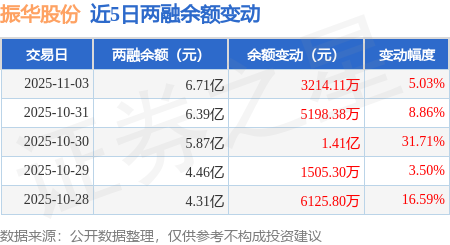 证券之星消息,11月3日,振华股份(603067)融资买入1.32亿元,融资偿还9986.91万元,融资净买入3214.05万元,融资余额6.71亿元,近3个交易日已连续净买入累计2.25亿元,近20个交易日中有16个交易日出现融资净买入。