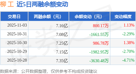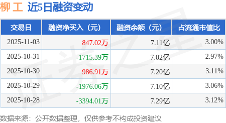 证券之星消息,11月3日,柳 工(000528)融资买入4878.19万元,融资偿还4031.17万元,融资净买入847.02万元,融资余额7.11亿元。